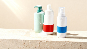 3D轻拟物风格,简约主义设计,清透泡沫粒子环绕洁面乳,营造清新柔和的视觉感受,传递清爽舒适的护肤体验。