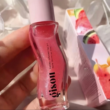 3D风西瓜泳圈托举红色香水瓶,清新水波背景,轻拟物设计,夏日清爽感十足。