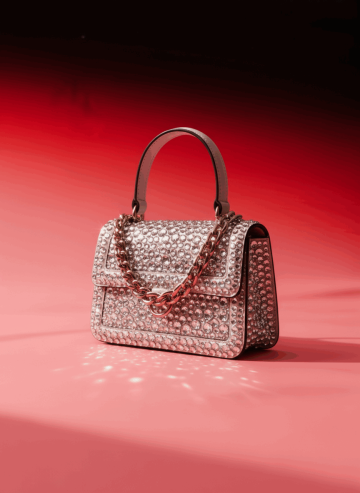 红色皮革包搭配金属链条,展现奢华、优雅与时尚感,简约设计尽显实景质感。