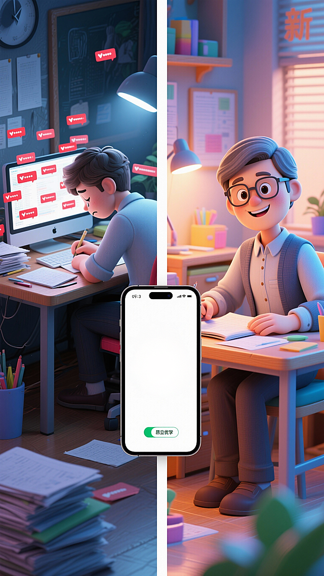 软3D风卡通设计,科技感十足,波普艺术色彩,展现名师1:1指导的互动场景。详情