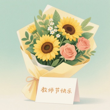 清新插画风手账设计,教师节花束温馨祝福,色彩柔和,充满节日氛围。