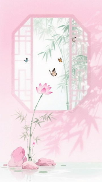 古典中式插画风,剪影与水墨结合,窗棂透竹影,雅致静谧。