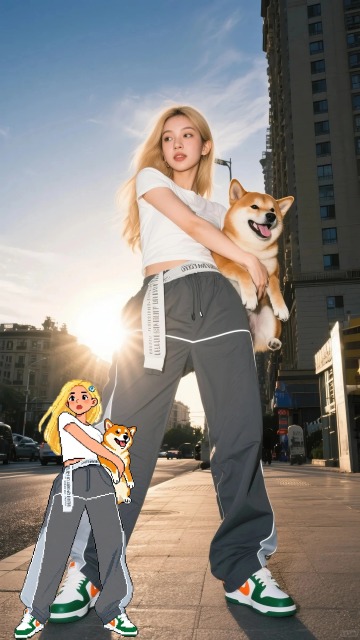 复古街头风,融合插画与实景,微缩人物拼贴呼应潮流穿搭,展现时尚与艺术的碰撞。