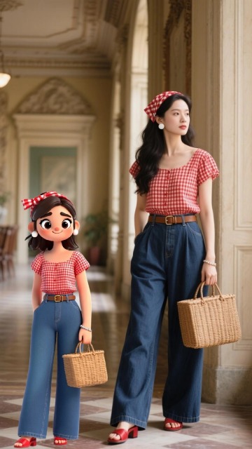 实景与漫画交融,清新田野间展现时尚感,插画风增添趣味。