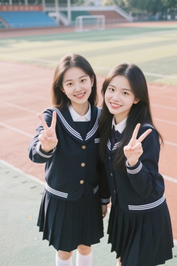 清新甜美校园风,两位少女活力四射,阳光下尽显青春动漫感。