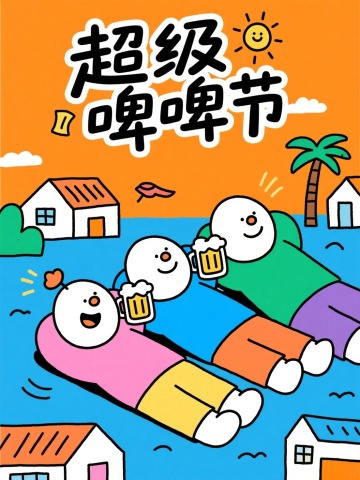 插画风夏日海报,emoji元素点缀,清爽感十足,传递暑期避暑乐趣。