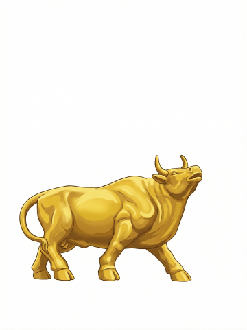赛博朋克风3D机械牛头,金属质感融合霓虹电路,未来科技感十足,背景数据流与上升箭头象征AI金融趋势,酷炫视觉冲击力强。