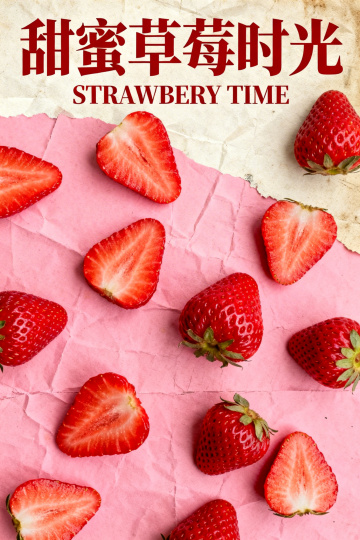 中式美学意境,轻拟物风搭配木雕质感底座,草莓饮品层叠如云霞,柔光渲染出唯美感与清新感,布艺与枝叶点缀,质朴中见细腻。