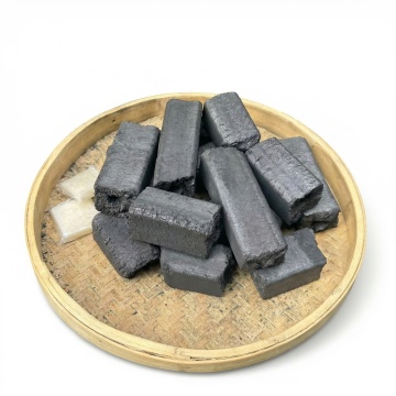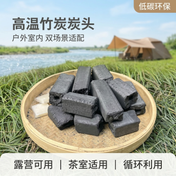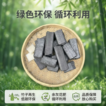 清新竹林实景背景,质朴竹炭堆叠,大字风促销文案,双色设计强化信息层级,印刷风视觉呈现,突出无烟无味、厂家直销卖点。