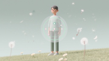 软3D风卡通人物,手捧书本,置身花丛,清新自然,充满童趣与温馨。
