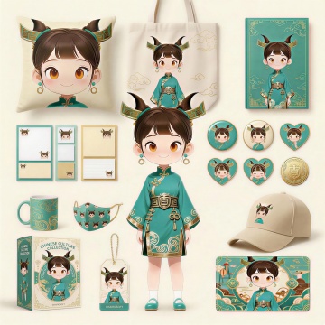 软3D风格的国潮马年IP,拟人化小马身着传统服饰,融合卡通与粘土质感,手持福牌、元宝等吉祥物,传递喜庆可爱氛围,寓意新年好运连连。