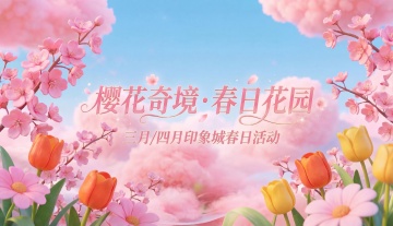 梦幻3D风,虚拟自然场景,粉色樱花与云海交织,甜美浪漫,节日氛围浓厚。