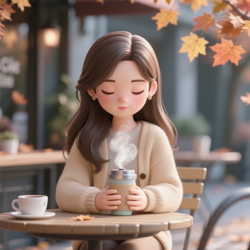 软3D风卡通人物在温馨咖啡馆对坐品茶,轻拟物设计搭配粘土质感,暖光烘托可爱氛围,传递春日浪漫情调。