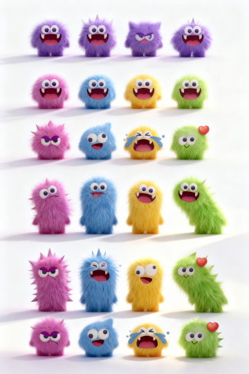 软3D风格的毛绒怪兽,融合毛发生长与面料质感,卡通造型萌趣十足,温馨童趣场景中洋溢可爱氛围。