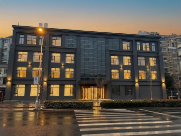 现代商务大楼,玻璃幕墙反射蓝天,简洁设计展现科技感与未来风。