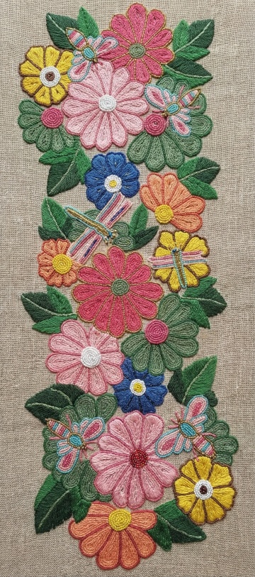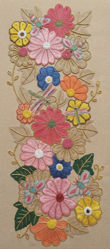 深蓝与金线交织的刺绣花,古典中式风韵,工笔细腻,浮世绘意境,双色设计优雅复古,尽显东方美学。