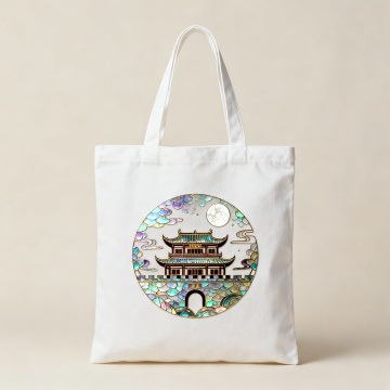 画面以螺钿漆画风格呈现了中国传统大漆工艺的宏阔画卷:玄黑大漆底板上,朱砂赤月嵌桂树剪影,中央螺钿江河虹彩闪烁,两岸金粉莳绘长城与牡丹绽放,戗金仙鹤衔桂花枝翩跹飞越,漆面温润深邃,螺钿光泽与金属质感交织,立体肌理感丰富,尽显大漆工艺的瑰丽庄重。