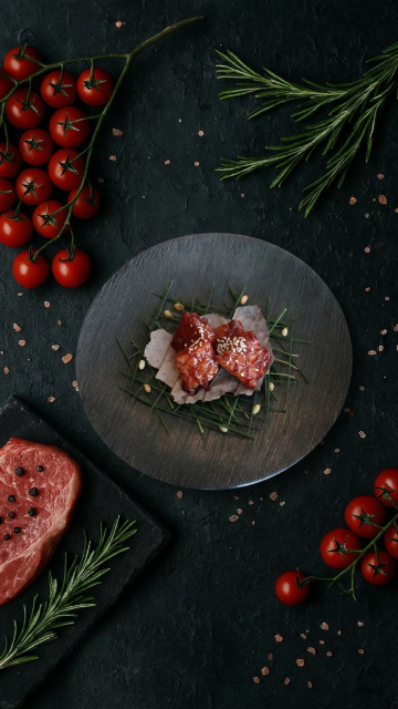 调整这张图片的背景,换成柔和的阴影和自然光,突出食物的纹理和色彩。