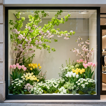梦幻感与卡通感交织,唯美插画风呈现微缩艺术场景,剪纸风建筑与浮雕式花朵环绕巨型口红,营造童话伦敦节日氛围。