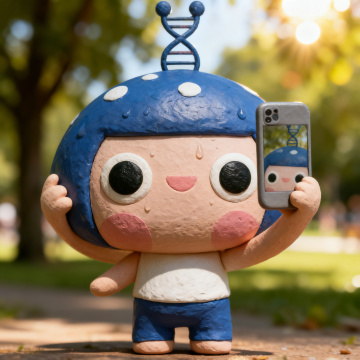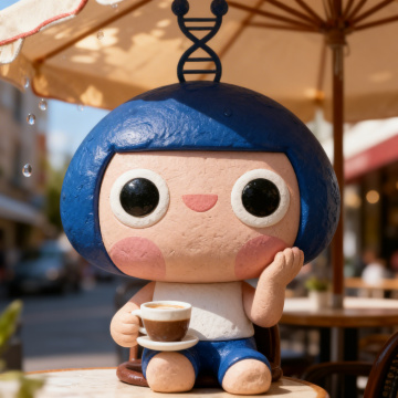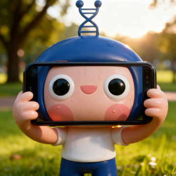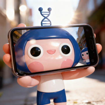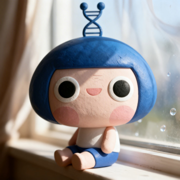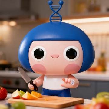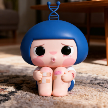 整体造型圆润亲和,以蓝色为主色调,胸前有十字医疗标志,充满温暖治愈感。
