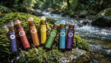 一个透明玻璃材质的棕色精油瓶,配有深色木质瓶盖,瓶身简约无过多装饰,放置在铺满干燥薰衣草花穗的浅色石台上,周围散落着几片完整的薰衣草叶片和几颗饱满的薰衣草花苞,背景是柔和虚化的淡紫色薰衣草花田,清晨的阳光透过薄雾洒下,在瓶身和花穗上形成细腻的光斑和柔和的阴影,水面倒映着瓶身和花穗的轮廓,整体画面呈现出宁静自然的氛围,光影柔和,色彩以紫色和淡绿色为主,质感细腻,细节清晰。