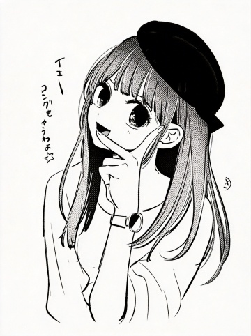 古典优雅的白描风漫画,少女手持花束,文艺气息浓厚。