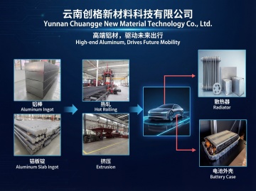 科技感与工业风融合,3D与2.5D设计展现铝材加工流程,金属质感搭配霓虹蓝光线条,极繁主义布局突出高端制造与未来出行主题。