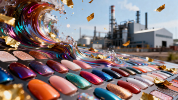 一张高质量化妆品系列海报,保持超写实3D渲染风格,纯色白色背景,柔和顶部光源产生细腻高光与渐变阴影,6个完全不同的化妆品元素规整排布成2行3列。每个元素都具有金属与塑料的细腻质感,高光泽度表面,精确的形态结构和清晰的材质区分:左上角为金色瓶盖的红色指甲油,右上角是带银色喷头的透明香水瓶,中间左侧为黑色外壳的粉饼盒,中间右侧是带刷头的棕色睫毛膏,左下角为金色边框的四色眼影盘,右下角是透明瓶身的玫瑰金色唇彩,整体视觉层级清晰,布局均衡,传达高端美妆产品的精致与奢华感。