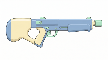 未来感科技枪械,卡通插画风,描边轻拟物设计,塑料质感,清新配色,充满童趣与科幻气息。