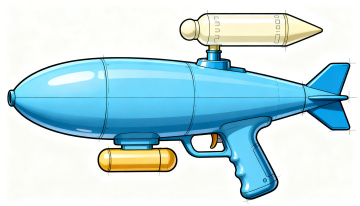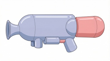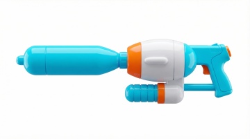 卡通感十足的扁平风玩具枪,轻拟物设计搭配柔和塑料质感,色彩清新,适合节日主题插画。