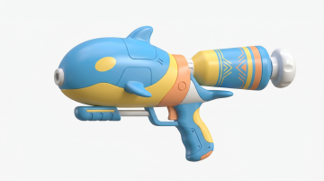 软3D风格的卡通水枪,融合可爱鲸鱼造型与塑料质感,色彩明快,充满童趣与节日氛围。