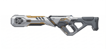 未来感科技枪械,融合工业与机能设计,金属质感十足,插画风扁平化呈现,线条硬朗,细节精致。