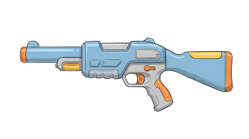 未来感科技枪械,卡通插画风,描边与轻拟物结合,塑料质感鲜明,充满童趣与科幻气息。