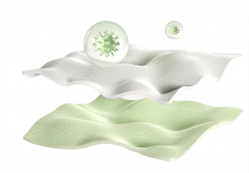 白色背景,医疗级卫生用品结构展示图,半透明分层设计,底层为波浪形立体凸起结构,中层是密集六边形蜂窝状透气层,顶层为平滑覆盖层,三个向上的箭头象征吸收力与透气性,整体采用清新的薄荷绿主色调,搭配淡青色层次过渡,光影柔和,高光细腻,体现产品的洁净、舒适与科技感,简约现代的插画风格,细节清晰,空间感强。