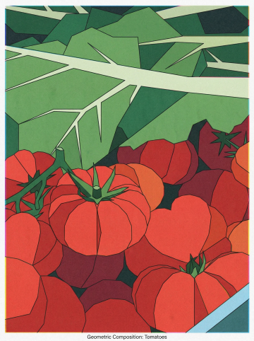 抽象感与几何风交织,现代插画风格呈现立体主义马首,融合拼贴元素与节日橙红韵律,时尚而富有东方意蕴。