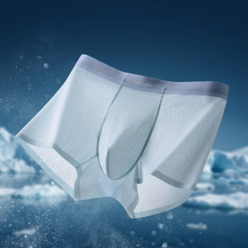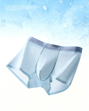 主体泡在波光粼粼、带有闪烁光点的淡蓝色水池里,以俯拍视角呈现,清新、水润的质感,采用写实的产品摄影风格。内裤需要平整顺滑,浸入在水中