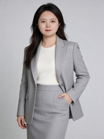 我想换成蓝色的西装,最好是现代化职业女性的感觉,参考韩式肖像照