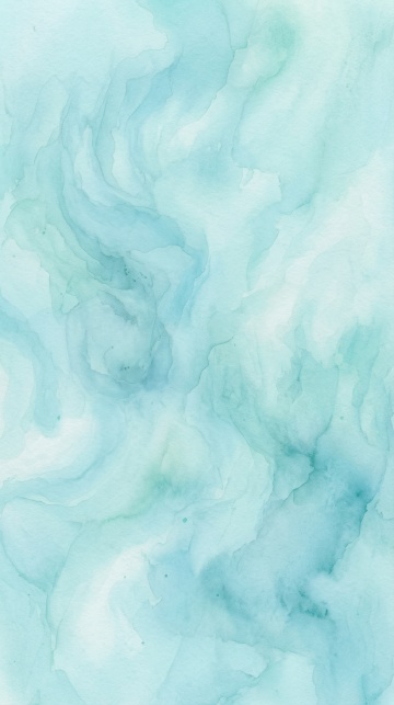 水彩风格的蓝色渐变背景,从画面顶部的浅淡天蓝色柔和过渡到底部的深邃靛蓝色,呈现出自然晕染的层次感。湿润的颜料在纸张上形成不规则的云朵状色块,边缘带有朦胧的虚化效果,部分区域因水分聚集而产生较深的蓝色斑点和水渍纹理,整体色调清新通透,营造出宁静而空灵的氛围,色彩过渡自然流畅,无明显笔触痕迹,充满水彩特有的轻盈与流动感。