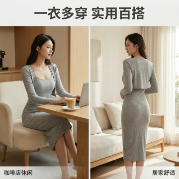 提取出图片中的上身外套和下身短裙,整体正面,变新,商业拍摄,有立体感,外套和短裤分开,白色背景