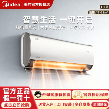 一张现代简约风格的空调产品白底图,白色长方形挂壁式空调主体,表面光滑平整,正面下方有一条水平的蓝色出风口,整体线条简洁流畅,机身无任何logo和文字,纯白色背景干净整洁,光线均匀柔和,突出空调的简洁设计和产品形态,具有清晰的产品展示效果。