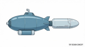 未来感与科技感融合的卡通风格潜水艇,采用轻拟物与软3D设计,呈现塑料质感,充满童趣与想象力。