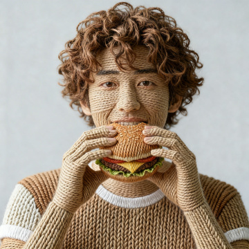 3D毛线编织猫咪,融合重拟物与毛发生长风,呈现柔软温馨的卡通感,面料质感细腻,可爱舒适,适合节日礼品设计。