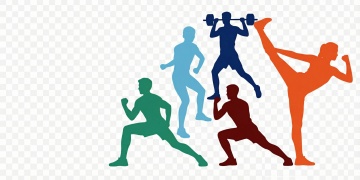 一系列6个不同运动元素的扁平化风格插画,每个插画中都有一个正在进行不同运动的人物,人物造型为简约的卡通风格,身体比例略显夸张,线条流畅圆润,使用纯色填充,边缘有清晰的描边。每个运动场景都有独特的动作和道具,分别是:1. 正在跑步的人物,穿着运动服和跑鞋,双臂前后摆动;2. 正在做瑜伽的人物,双腿盘坐,双手合十放于胸前;3. 正在打篮球的人物,双手持球准备投篮;4. 正在游泳的人物,身体呈流线型,双臂向前伸展;5. 正在骑自行车的人物,双手扶把,双脚踩踏板;6. 正在举重的人物,双手紧握杠铃,双臂弯曲将杠铃举至胸前。每个插画都有独立的纯色背景,整体色彩变换丰富,分别采用不同的主色调,保持整体风格统一,所有插画规整排布,形成一个系列素材集合。