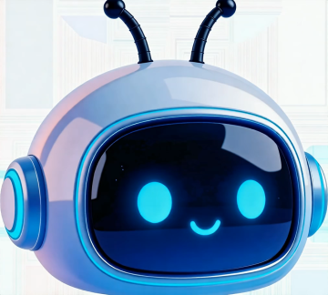 未来感与科技感交融的软3D机器人,拟人化设计搭配霓虹蓝光眼,卡通风格萌趣十足,塑料质感光滑细腻,充满童趣与未来气息。