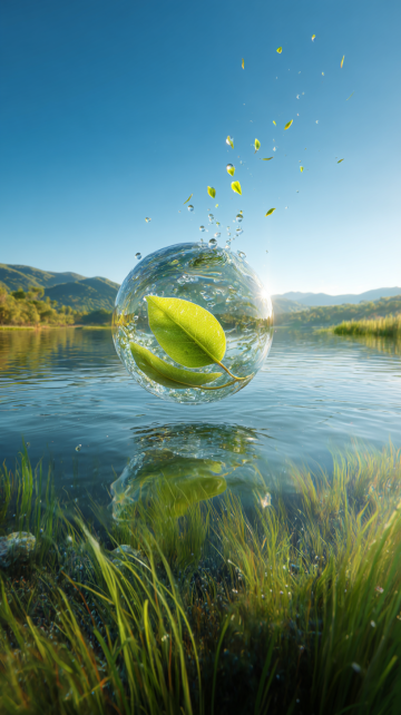 3D风虚拟自然景观,水彩质感融合油画笔触,呈现清新清透的草原湖景,柔和光影营造静谧舒适氛围,传递夏日自然之息。
