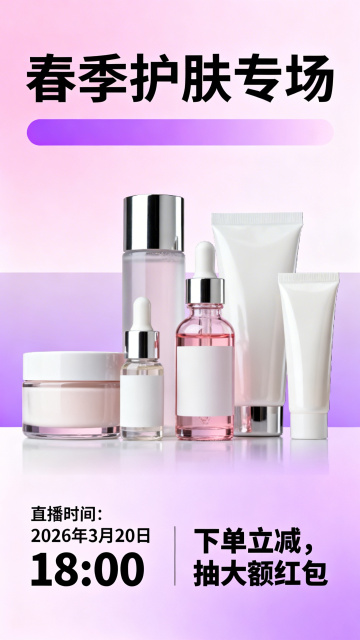 一个徽章,徽章上是白色金属质感立体大字“818再升级 护肤品全场9折 国补力度30%~35%。整体配色为绿色为主,风格活泼醒目,突出文案,背景为白色渐变