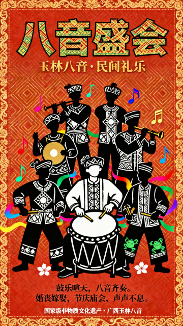 喜庆插画风,大字“80”刺绣感设计,民族服饰人物庆祝,烟花满天,节日氛围浓厚。