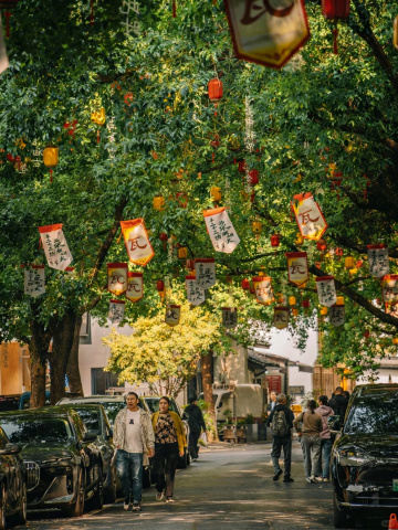 温暖灯光下热闹的餐饮场景,悬挂着传统红色灯笼,食客们围坐在木质餐桌旁用餐,穿着红色上衣的服务人员正忙碌地穿梭其间,整体呈现出温馨而充满烟火气的氛围,具有写实的摄影风格,色彩以暖色调为主,光影柔和,营造出舒适惬意的就餐环境,展现出餐饮场所人来人往、生意兴隆的热闹景象。