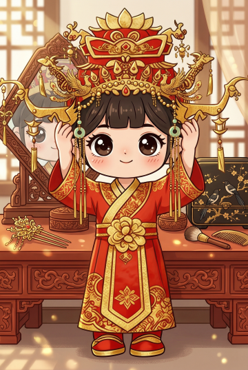 软3D风可爱卡通少女,身着古装,手持花扇,萌趣十足。