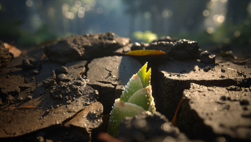 电影级延时摄影,竹笋从潮湿黑暗的森林土壤中破土而出,极致微距到广角的镜头转换。画面始于土壤裂开的特写,金绿色笋尖在清晨逆光中浮现,形成 radiant 边缘光和柔和镜头光晕。竹笋快速伸长,相机平滑拉远,展现其节状结构,表面露珠闪烁。竹笋顶开落叶,逐帧长高,最终成为挺拔的幼竹,背景是梦幻焦外的雾竹林。晨光穿过林冠,形成体积光和闪烁的尘埃。超写实纹理,自然生长物理,8k分辨率,专业调色带暖琥珀高光和柔